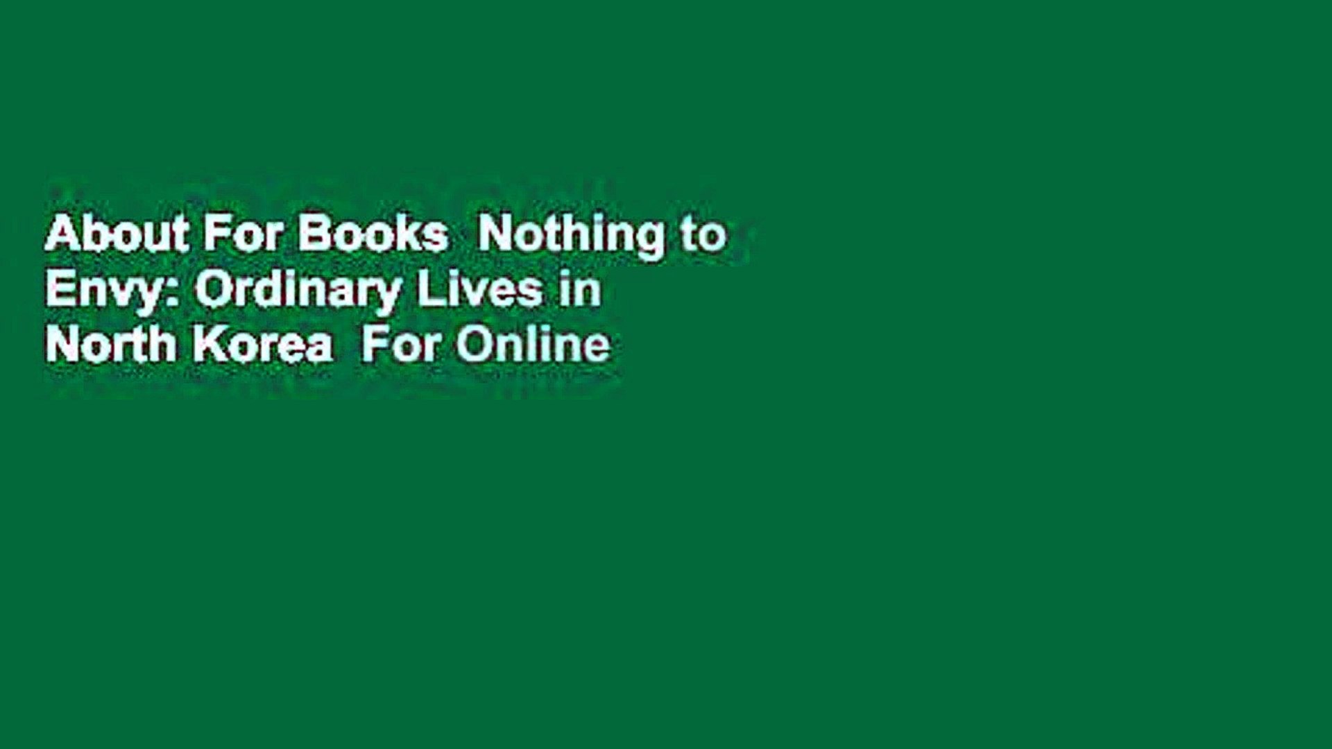 Ordinary lives in north korea is a 2009 nonfiction book by los angeles times journalist barbara demick, based on interviews with north korean refugees from the city of chongjin who had escaped north korea. In her book, nothing to envy: Nothing to envy is a very easy read and you'll find yourself staying up way past bedtime with this one. Whereas most literature on north korea is laden with blurry statistics and speculation of the policies. North korean children are taught to sing that we have nothing to envy in the world, and until recently people seem to have believed this as they but despite such comments, the book does not argue that the regime is about to collapse, as many defectors and western commentators in the 1990s.